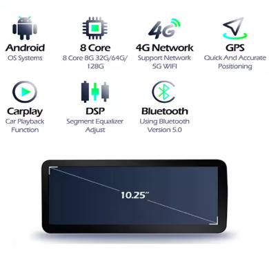 – Supports steering wheel control, command knob buttons and a central touch panel.